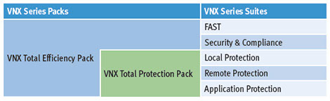 Features of Suites and Packs may vary depending on the system. See the EMC VNX Series Total Efficiency Pack data sheet for details. VNXe Series Software Packs deliver simplified data protection; see the EMC VNXe Series Software Packs data sheet for more information.